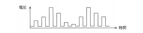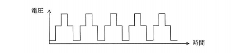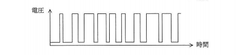 モータの速度制御などにPWM(Pulse Width Modulation)制御が用いられる。PWMの駆動波形を示したものはどれか。ここで、波形は制御回路のポート出力であり、低域通過フィルタを通していないものとする。