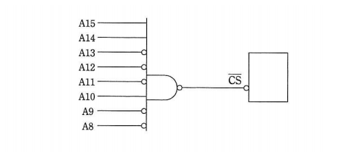 図の回路を用いてアドレスパスからCS信号を作る。CS信号がLのときのアドレス範囲はどれか。ここで、アドレスパスはA0~A15の16本で、A0がLSBとする。また、解答群の数値は16進数である。