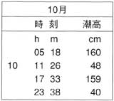 蒲郡における平成15年8月10日午前の低潮時の潮時潮高を求めよ。潮汐(せき)表によると蒲郡の標準港は衣浦で、潮時差は-0h 5m、潮高比は1.03、衣浦港の当日の潮汐は右図のとおりである。