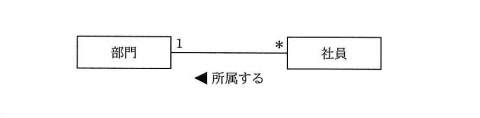 UMLを用いて表した部門と社員の関係を表すデータモデルの説明のうち,適切なものはどれか。