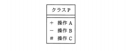 UMLを使って図のクラスPを定義した。このクラスの操作のうち、公開可視性(public)を持つものはどれか。