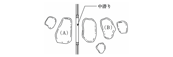下図に示す茶庭の中潜りにおける役石【A】、【B】の名称の組合せとして、適当なものはどれか。