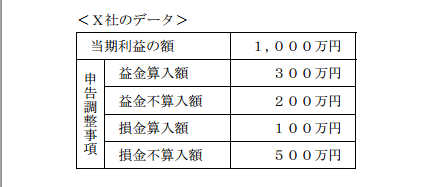 下記<X社のデータ>に基づき算出されるX社の法人税の課税所得金額として、正しいものはどれか。なお、記載のない事項については考慮しないものとする。