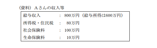 下記の〈資料〉によれば、Aさんのライフプランニング上の可処分所得の金額は、【 】である。