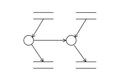 業務プロセスのモデリングに用いられるDFDの記述例として,適切なものはどれか。