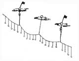 右図に示す「はえ縄漁業」について述べた次の(A)と(B)について、それぞれの正誤を判断し、下のうちからあてはまるものを選べ。