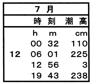 伊良湖における7月12日の潮汐について述べた次の文のうち、誤っているものはどれか。 ただし、潮汐表によると伊良湖の標準港は衣浦で、潮時差は-00h10m、瀬高比は0.89、 衣浦の当日の潮汐は下表のとおりである。