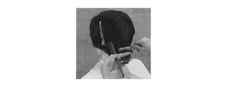 下図は、デザインヘアのカット技法を表したものである。ブラントカットに該当するものは次のうちどれか。