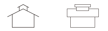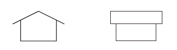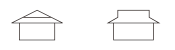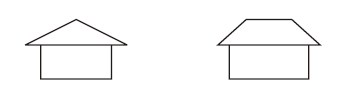 建築物を下図に示す2方向から見た場合の「屋根の形状(模式図)」と、その「形式」を表す語句の組合せとして、正しいものはどれか。